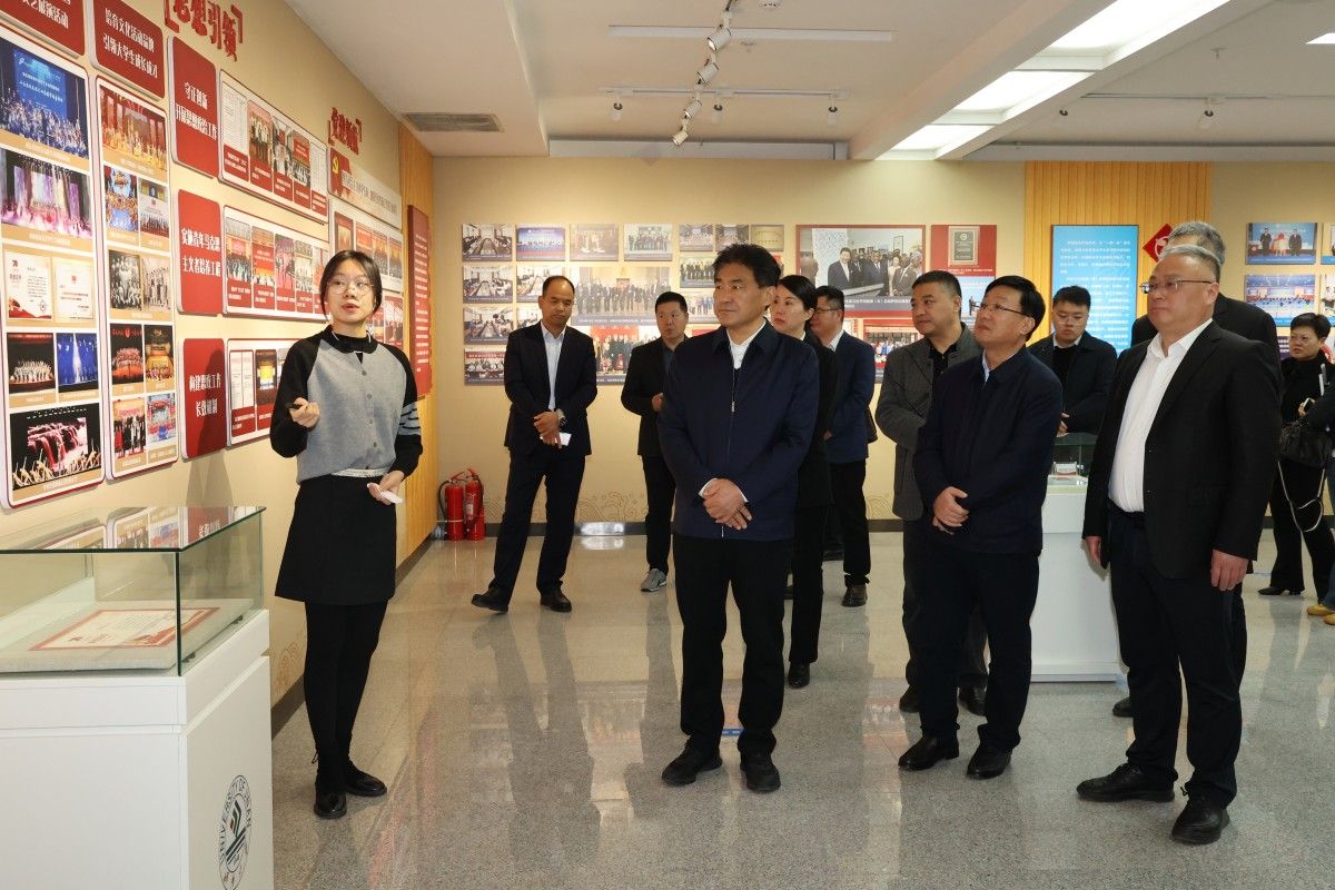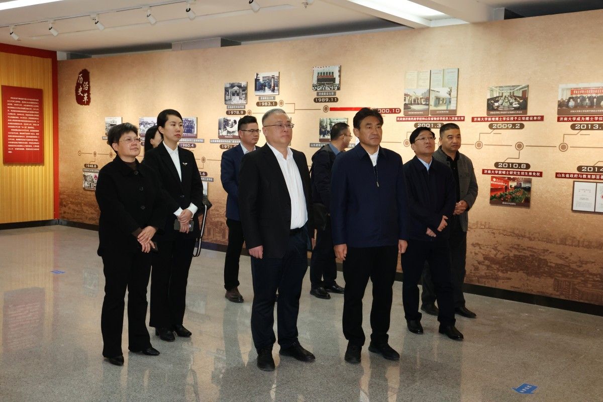 仪式结束后,王乐新一行在学校领导陪同下,参观了济南大学办学成就展。