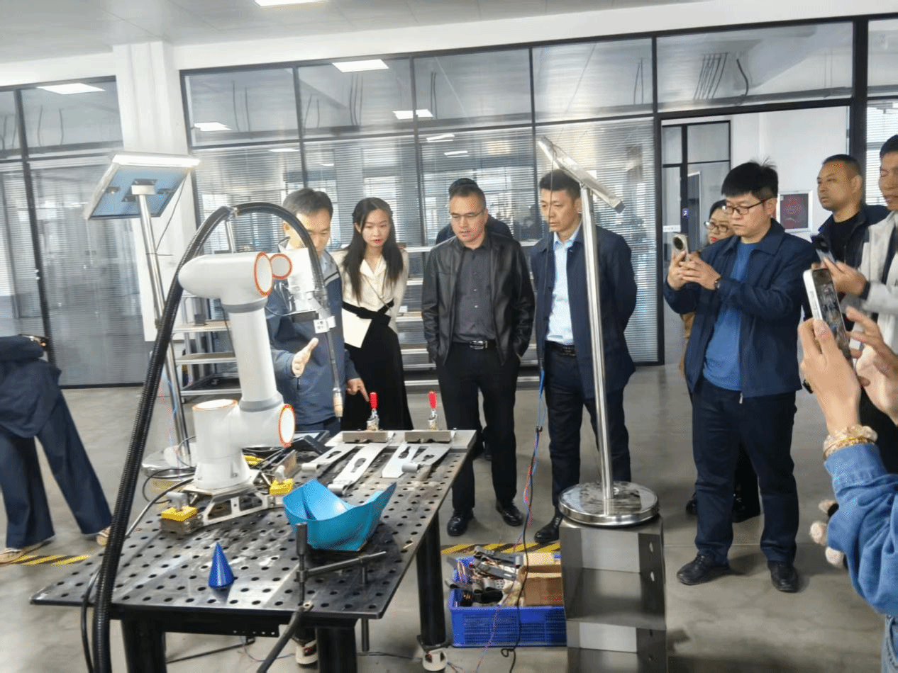 在协作机器人车间,考察团重点观看了焊接机器人、煮面机器人及激光机器人的实际工作演示。这些机器人展现了出色的工艺一致性与作业灵活性,无论是精密焊缝、餐饮自动化还是高速激光加工,均达到成熟商用水平。更令校友们印象深刻的是,企业基于模块化设计与快速编程平台,能够根据不同行业场景需求,在短时间内完成机器人功能与形态的定制化开发,充分体现了协作机器人“即需即用、柔性适配”的技术优势。