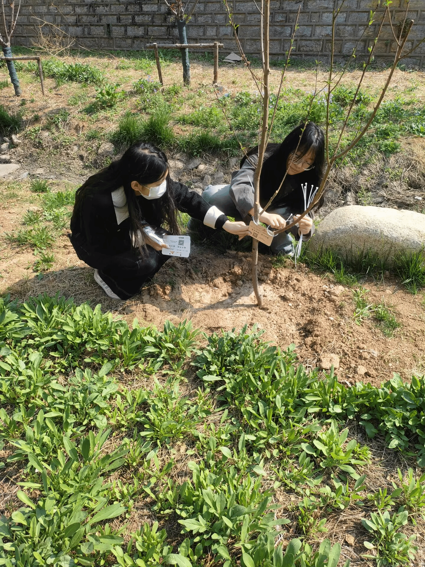 在信息统计的同时,志愿者们严格按照活动流程,为每一棵校友认捐的爱心树悬挂专属铭牌。铭牌上清晰标注了认捐校友的信息与专属标识,方寸之间承载着校友对母校的牵挂与祝福,枝叶之间定格着校友与母校“同护绿意、共叙乡情”的深厚情谊。悬挂过程中,志愿者们有序固定铭牌、逐一拍照留证、认真填写记录表,以严谨细致的态度,让校友的心意稳稳扎根于济大校园。